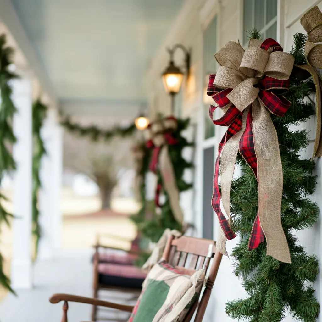 How can I decorate a porch for Christmas on a rustic budget?