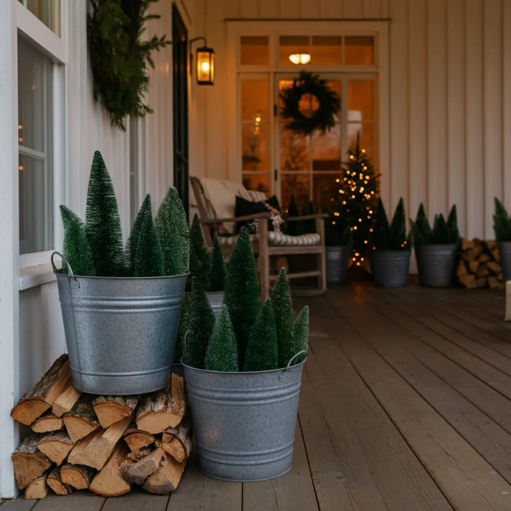 Use galvanized buckets or tubs to hold small Christmas trees, firewood, or even faux snowballs. The weathered metal adds a touch of industrial charm to your rustic theme.