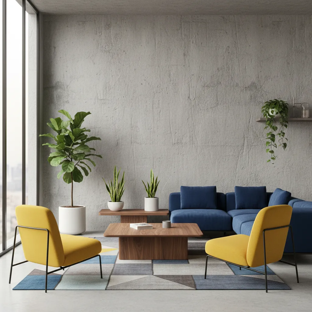 For a minimalist, contemporary edge, a concrete finish wall offers a cool, industrial vibe. You can achieve this with specialized plaster finishes rather than pouring actual concrete.