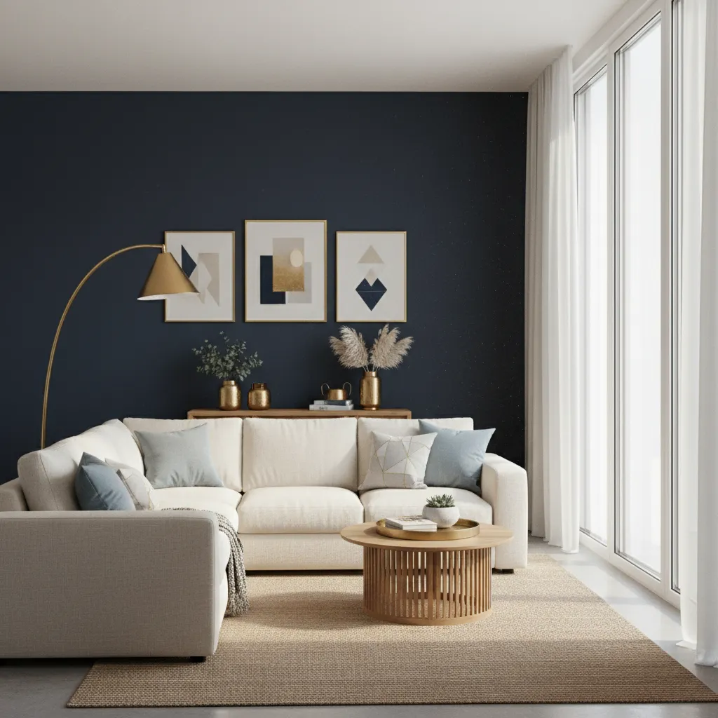 Sometimes, the boldest move is simply changing the color palette. A deep, matte accent wall in charcoal, navy, or forest green creates an intimate atmosphere perfect for movie nights or curling up with a book.