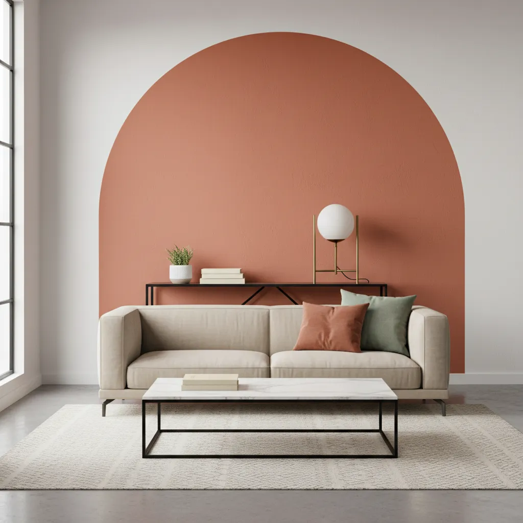 You don’t need to cover the whole wall. Color blocking involves painting geometric shapes—arches, circles, or squares—to frame specific furniture pieces, like a sideboard or a reading chair.