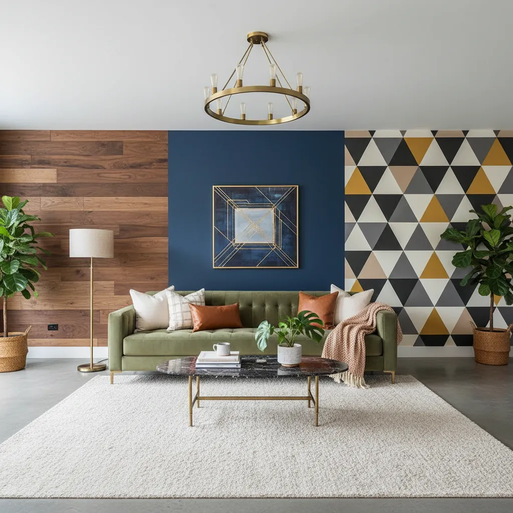 Popular options include bold paint colors, wallpaper, wood paneling, brick or stone veneers, textured plaster, or even fabric panels. Mixing materials, like paint with wood accents, can create a unique and personalized look.
