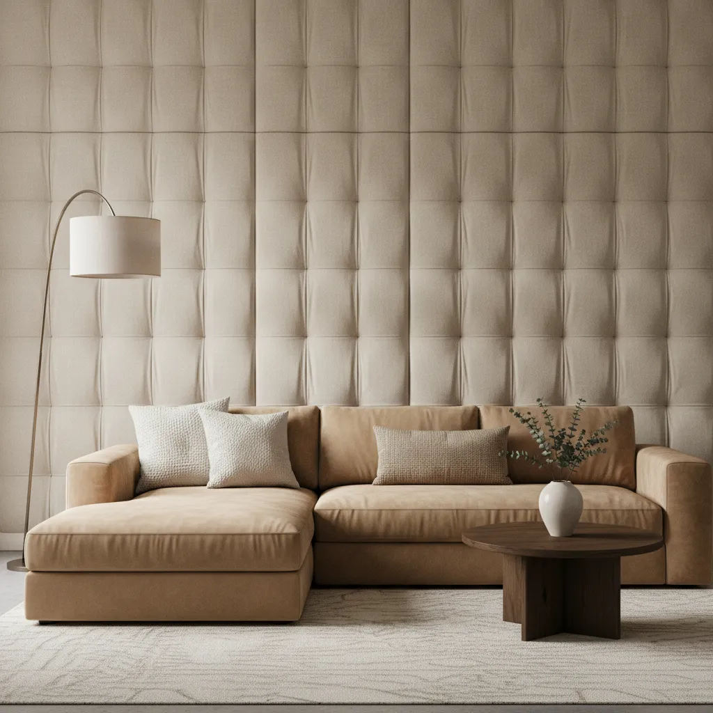 For the ultimate in coziness, upholster your wall. Fabric panels add softness and incredible sound dampening, making your living room feel like a quiet sanctuary.