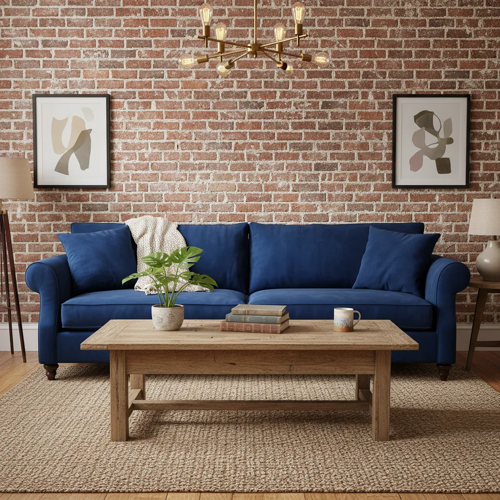 Why it works: The rough texture of brick contrasts beautifully with soft textiles like velvet sofas or wool rugs.