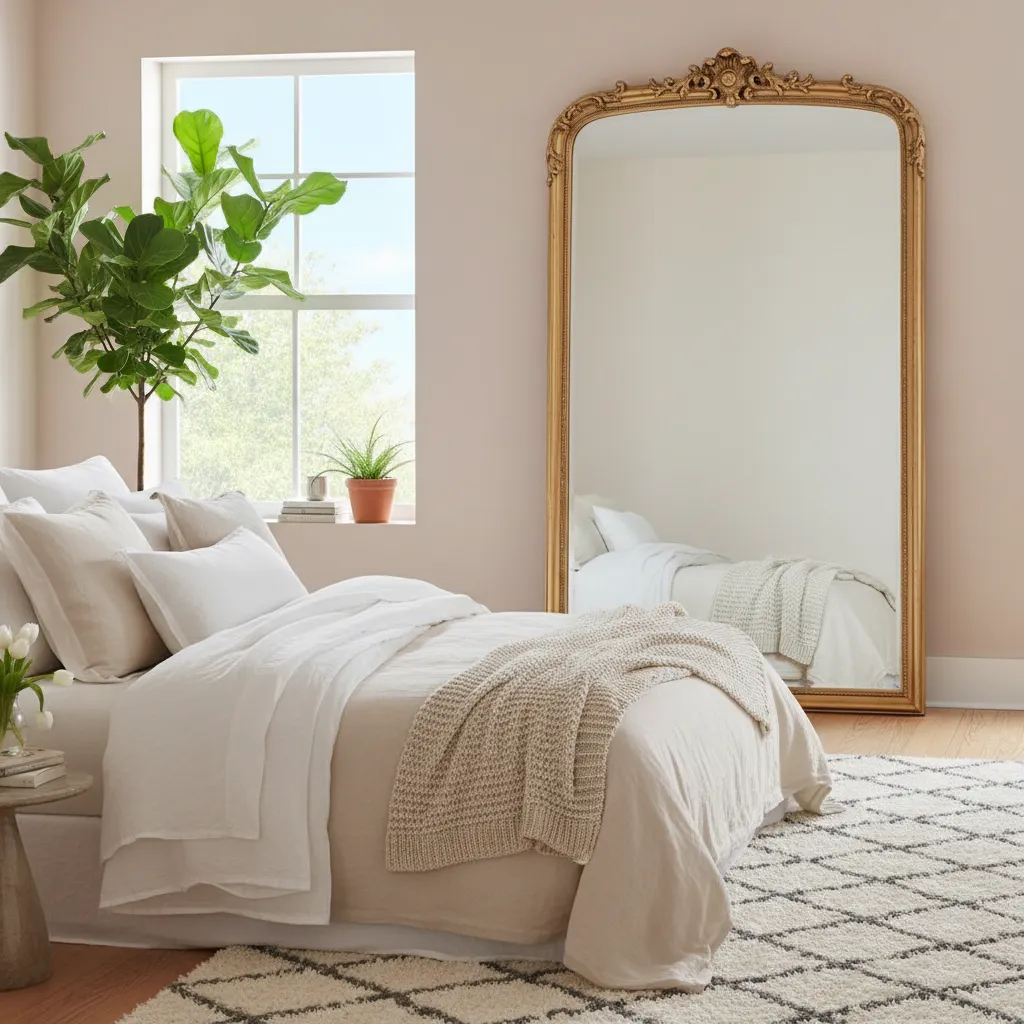 Mirrors are a designer’s secret weapon. A large, beautifully framed mirror leaning against a wall can make the room feel bigger and brighter by reflecting light. Consider an ornate vintage frame for a touch of glamour or a simple, modern design for a sleek look. Placing a mirror opposite a window is a great strategy to maximize natural light.