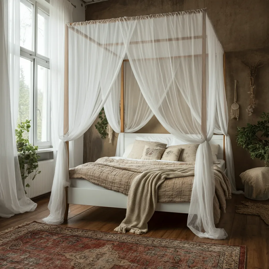 For a truly romantic and dreamy effect, consider adding a canopy or draping fabric from the ceiling. Sheer white or ivory fabric can create a soft, ethereal look that makes your bed feel like a private oasis.