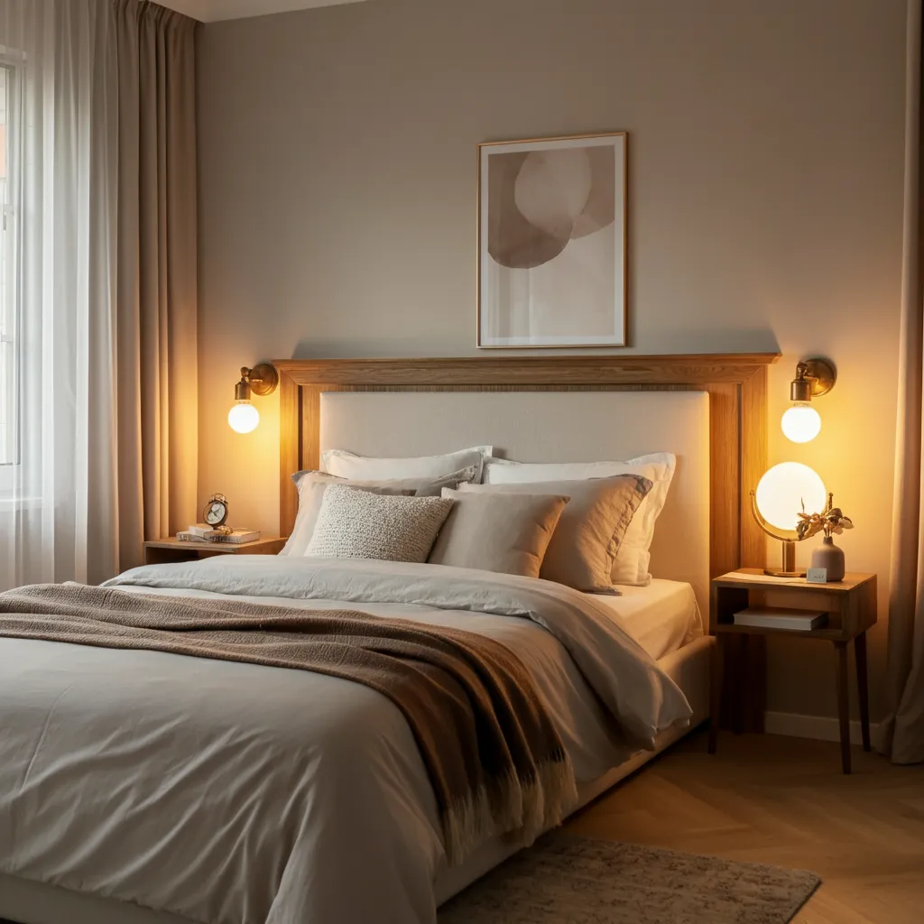 Harsh overhead lighting has no place in a dreamy retreat. Use a combination of light sources to create a warm, layered glow. A stylish floor lamp, elegant bedside table lamps, and even dimmable string lights can create a soft and tranquil ambiance.
