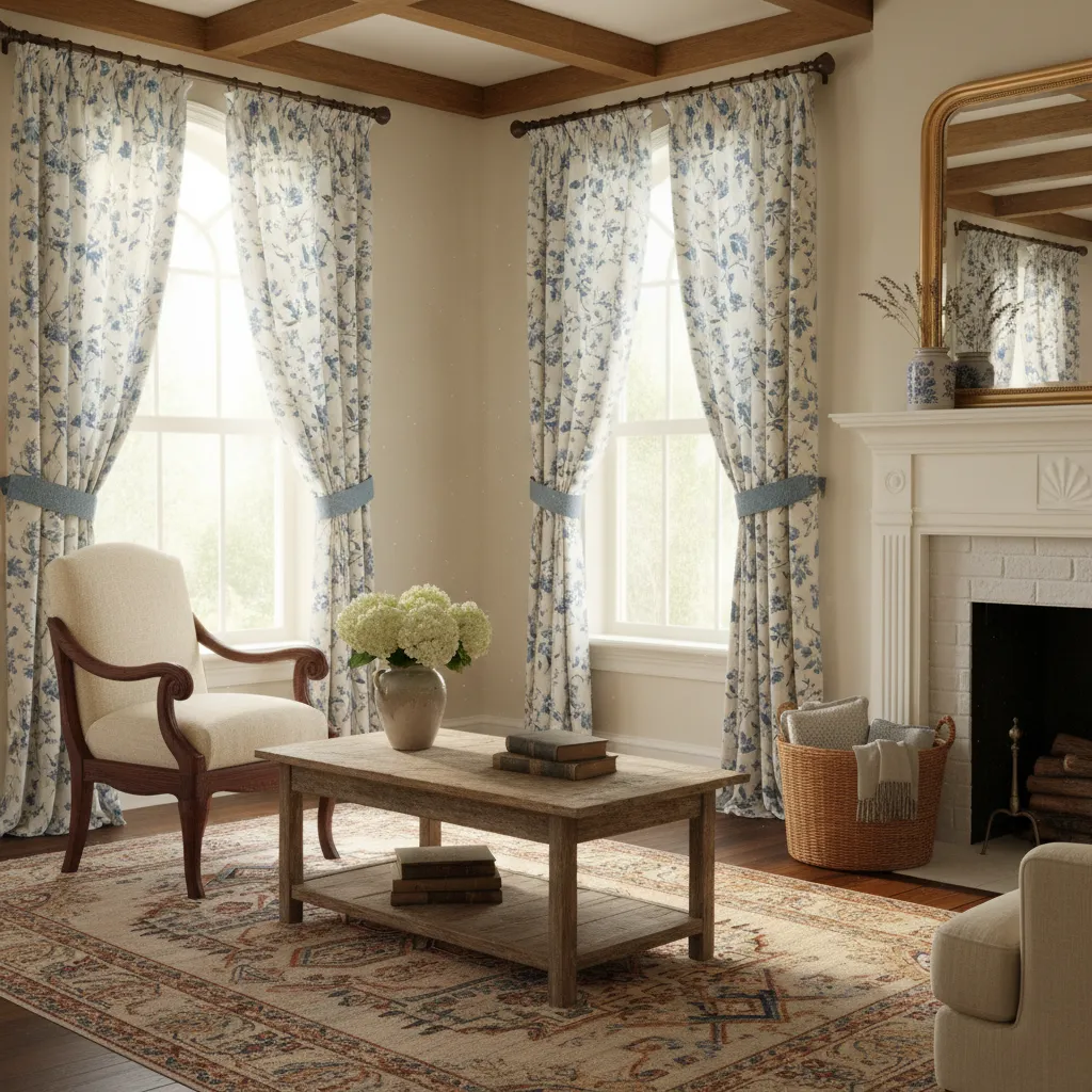 Bring a touch of the countryside indoors with French blue floral patterns. A white background with delicate blue flowers or vines looks charming and traditional. These curtains pair exceptionally well with antique furniture or farmhouse decor, creating a sweet and welcoming atmosphere.