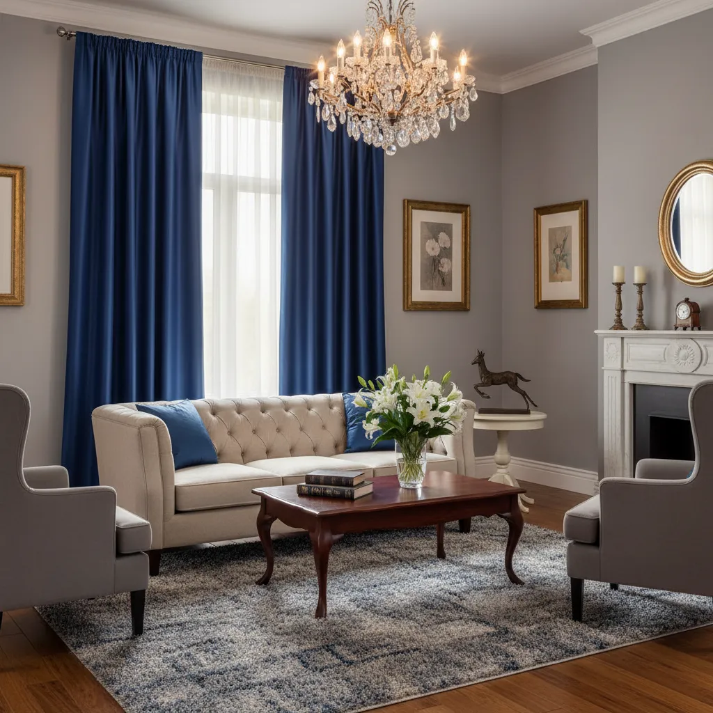 If you have a formal living room, consider deep sapphire blue faux silk curtains. Silk fabrics reflect light beautifully, adding glamour and sophistication. While real silk is expensive and hard to clean, high-quality polyester blends offer the same elegant look on a much smaller budget.