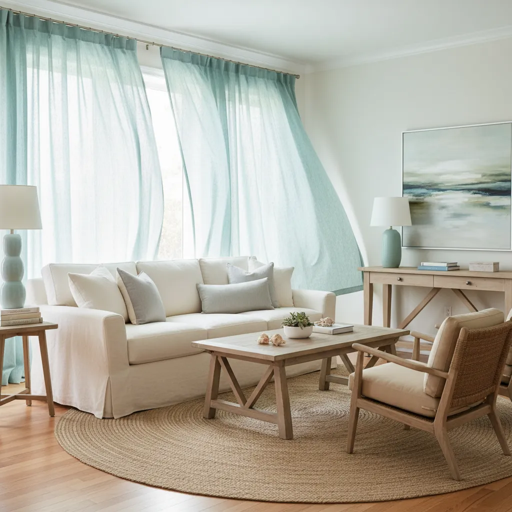 2. Sheer Aqua Panels for a Breezy Vibe