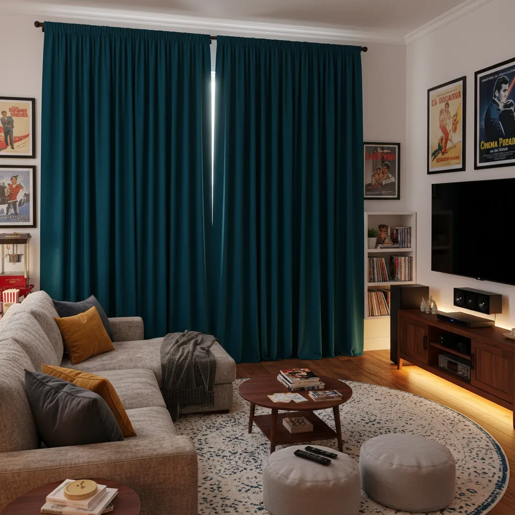 6. Teal Blackout Curtains for Movie Lovers