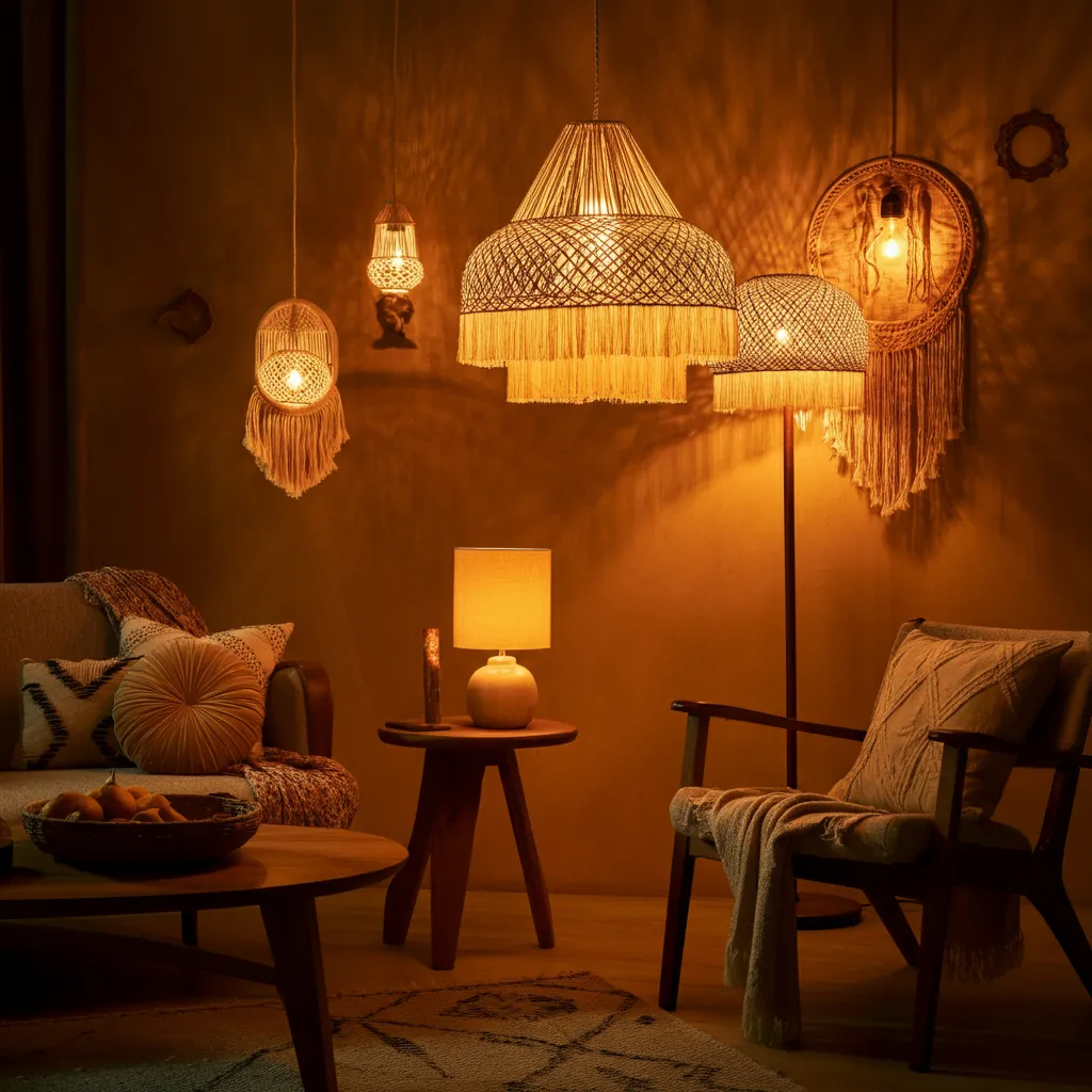 Lighting is key to setting the mood. Look for boho-inspired pendant lights or mid-century modern floor lamps to add warmth and style.