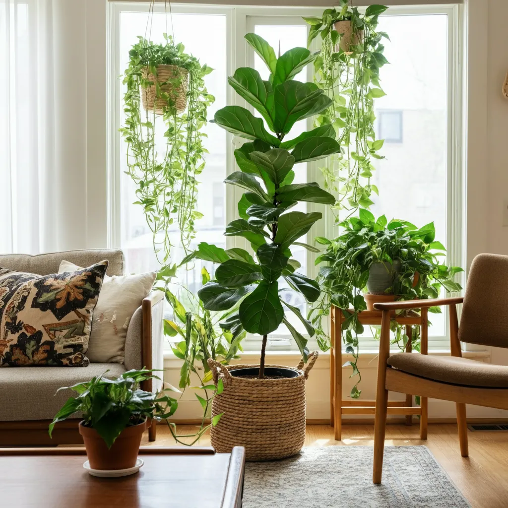 Plants are a must-have in any boho mid-century modern living room. From towering fiddle leaf figs to trailing pothos, greenery adds life and vibrancy to your space.