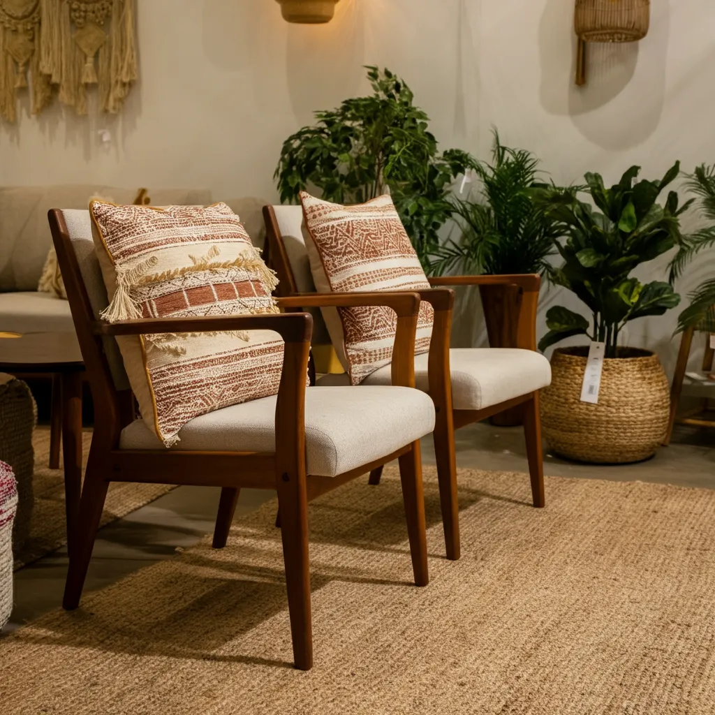 Accent chairs are a great way to add mid-century modern flair. Look for chairs with clean lines and tapered legs, and pair them with boho-style cushions.