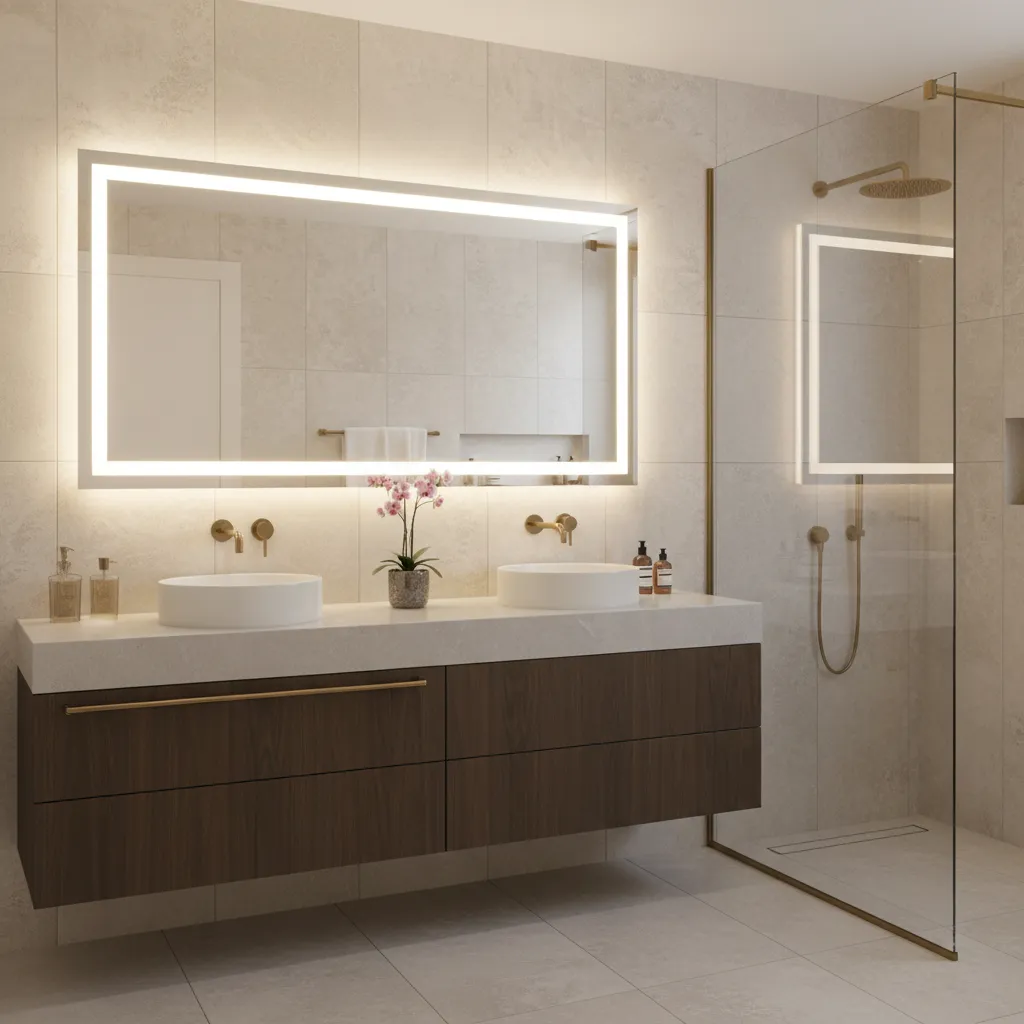 A backlit mirror offers a seamless, contemporary glow that feels both luxurious and functional. The light emanates from behind the mirror, providing soft, even illumination without any visible bulbs. Many models come with dimmable features and even different color temperature settings.