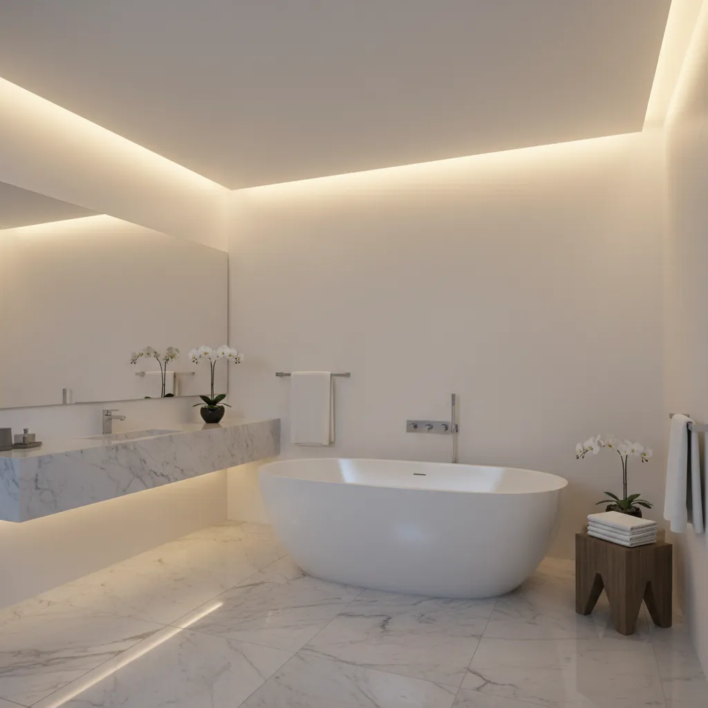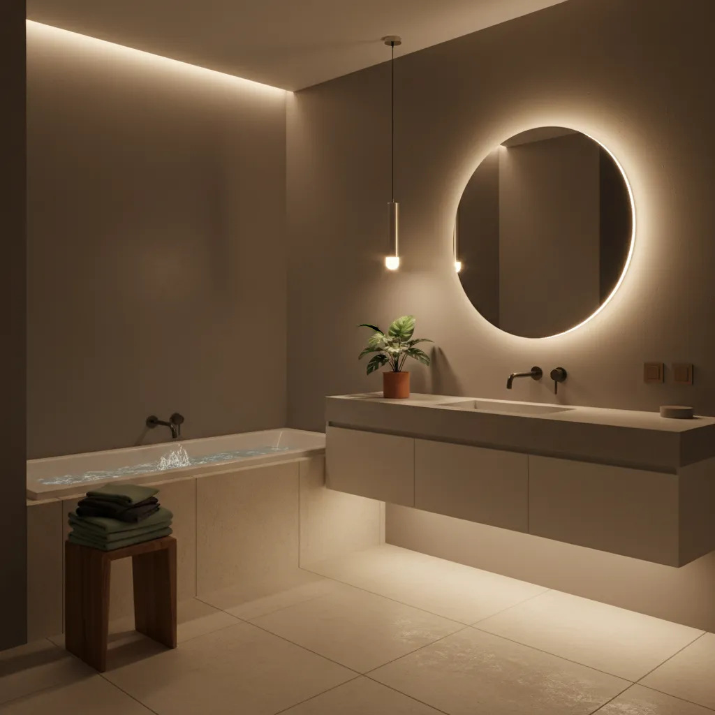 If you have a floating vanity or open shelving, installing LED strips underneath adds a layer of soft, indirect light. This is perfect as a nightlight, providing just enough illumination for late-night trips to the bathroom without being jarringly bright.