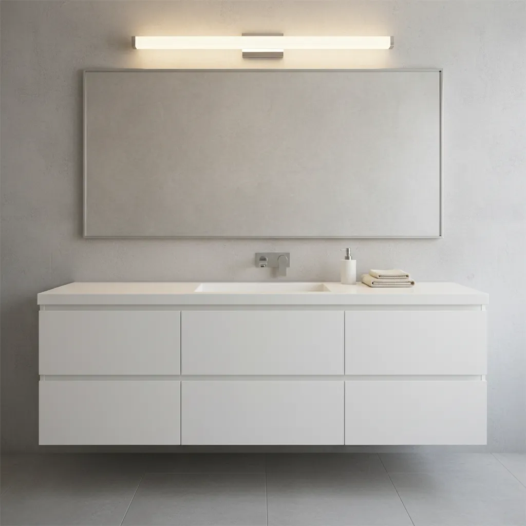 A horizontal light bar mounted above the mirror is a sleek and modern option. It works especially well in bathrooms with lower ceilings or limited wall space. Look for fixtures with frosted glass or multiple bulbs to diffuse the light and prevent a harsh downward glare.
