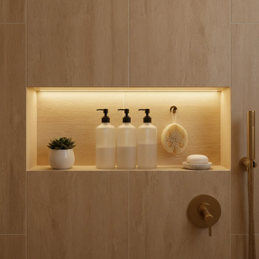 If you have a built-in shower niche for your shampoo and soap, adding a small, waterproof LED strip or puck light can turn it into a stunning feature. It provides a soft glow that’s both practical and incredibly stylish.