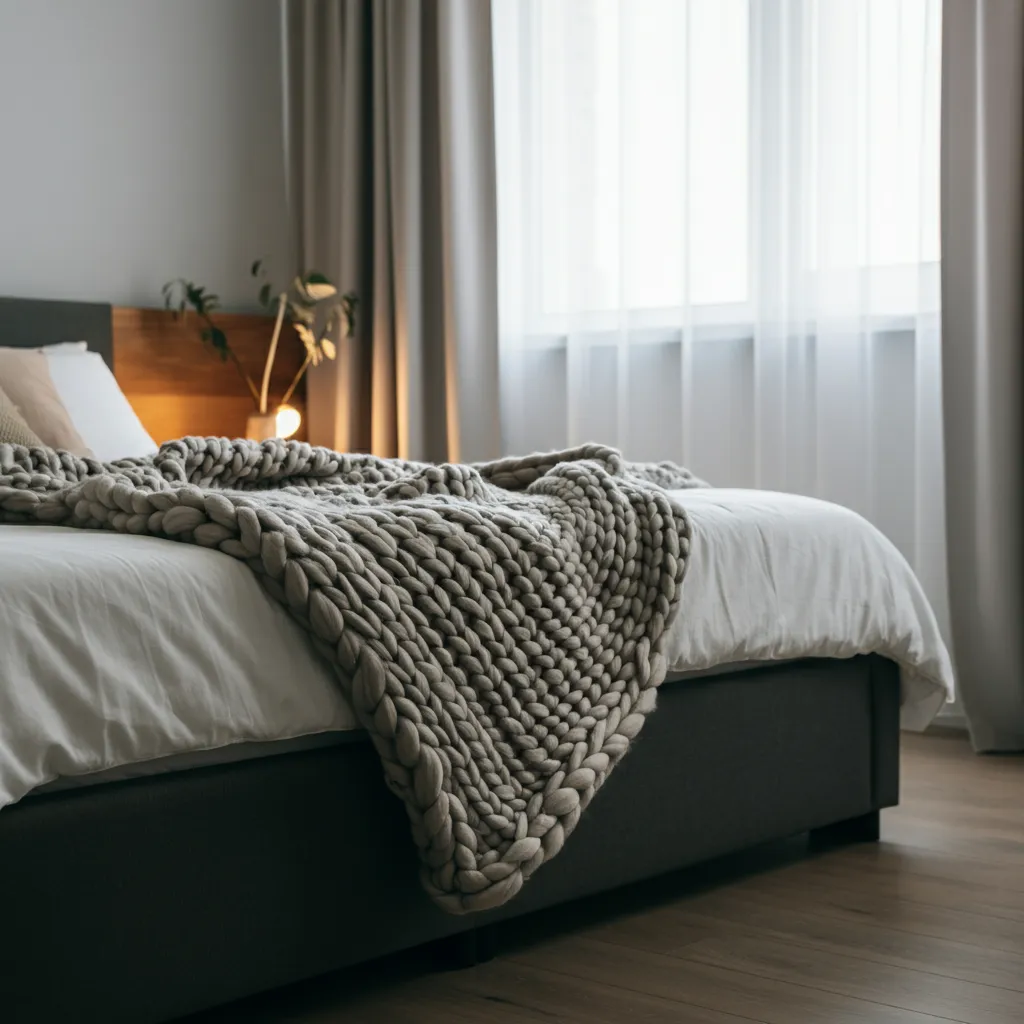 Drape a chunky knit or soft fleece blanket at the foot of your bed. It not only adds a layer of warmth and texture but also introduces a new color or pattern to your design.
