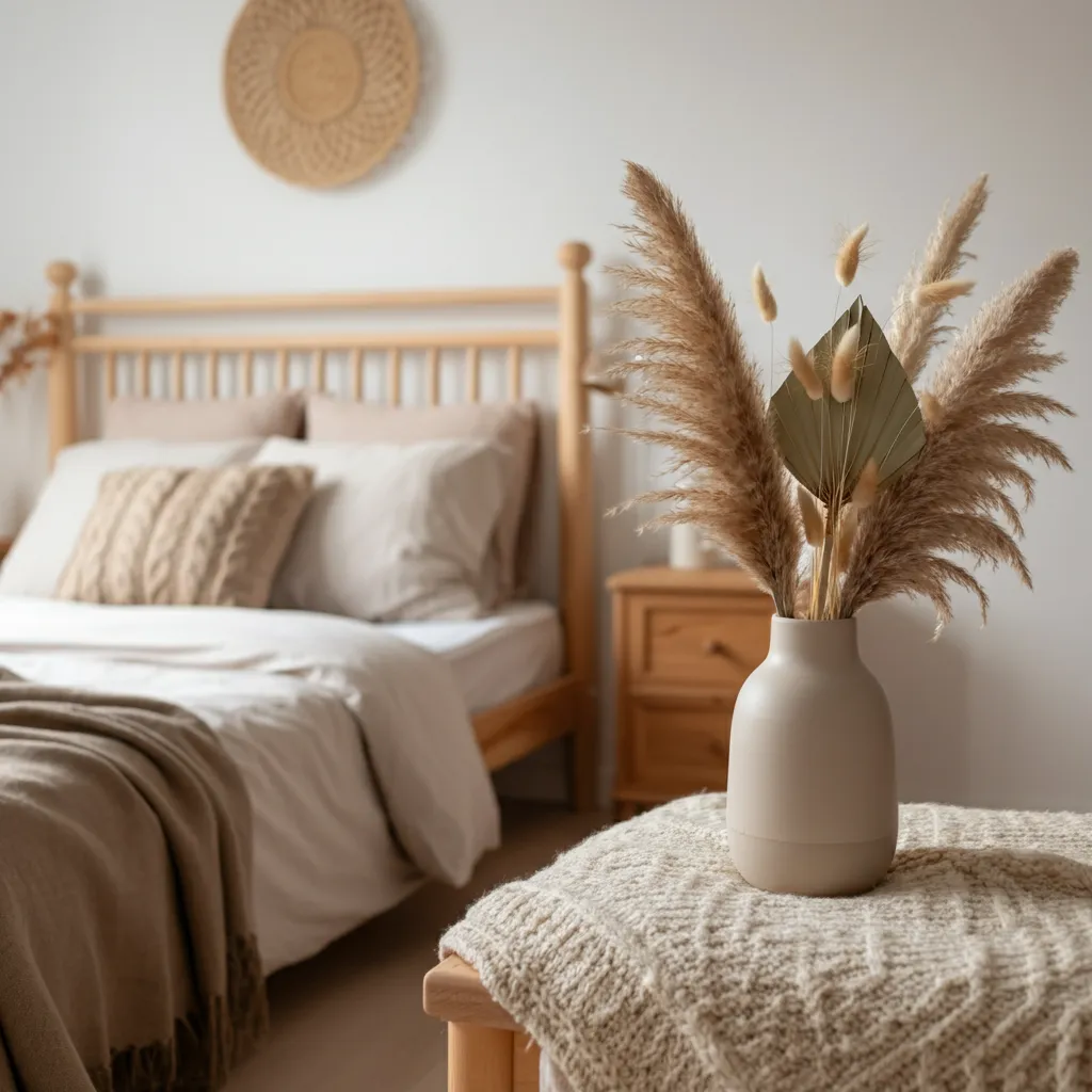 For a touch of nature that requires zero maintenance, create an arrangement of dried flowers or grasses like pampas or bunny tails. They add texture and a rustic, romantic feel to the room.