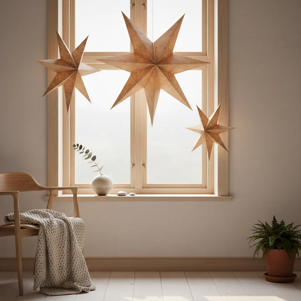 The Practical Tip: You only need 7-9 brown or white paper lunch bags, a glue stick, and scissors. Glue the bags together in a stack, cut a pattern into the top corners (like a snowflake), and fan them out to connect the ends. The result is a sculptural, 3D star that looks like high-end Scandinavian decor.