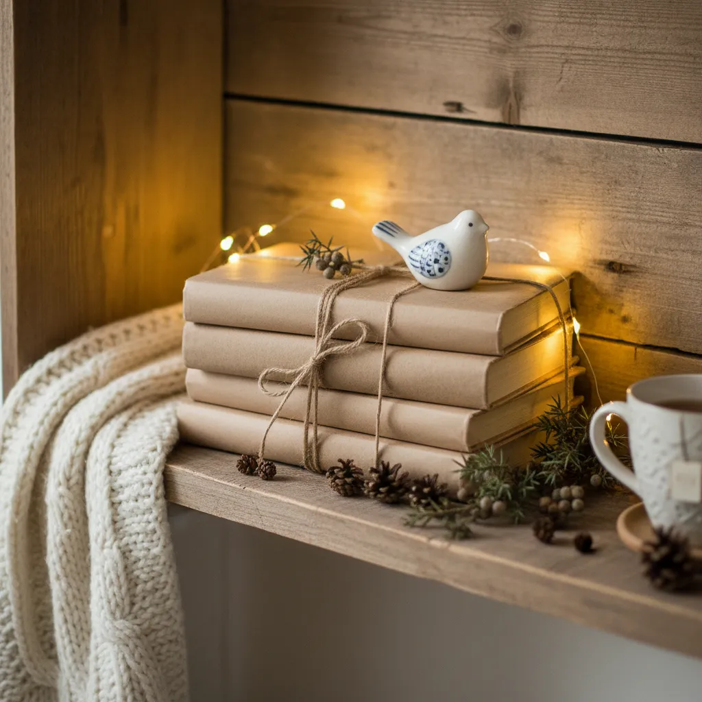 Styling Tip: Stack books horizontally to create risers for other small decor items like a pinecone or a single ornament. This adds height variation to your displays without costing a dime.