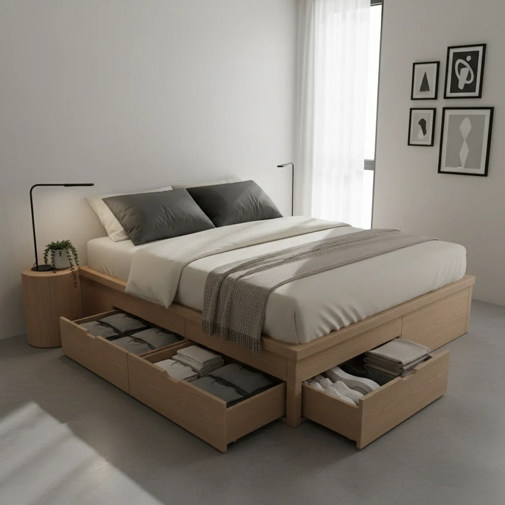 Your bed is likely the largest piece of furniture you own. Make it work for you by choosing a frame with built-in drawers. This completely eliminates the need for a bulky dresser in your bedroom.