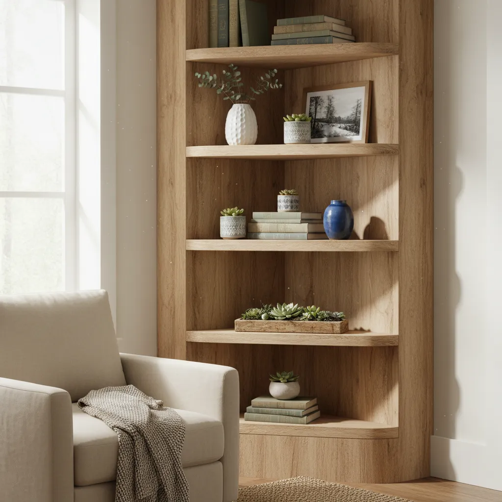 Do not let weird architectural corners go to waste. Install custom-cut corner shelves to display your favorite items. If you need inspiration on how to style these tricky spots, look at these Creative Living Room Wall Decor Ideas.