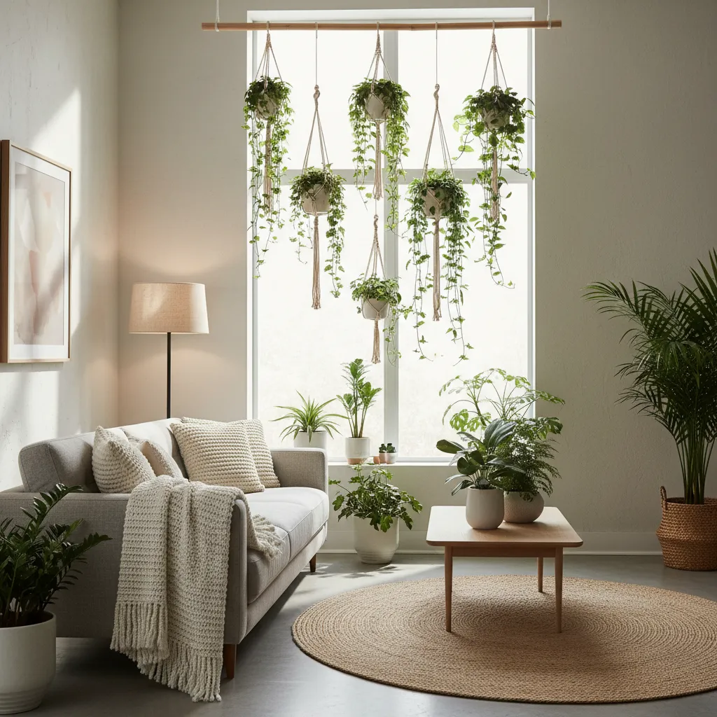 Houseplants breathe life into a room, but large pots consume valuable floor space. Try using macrame hangers or wall-mounted planters. If you want to expand this concept outdoors, check out these Creative Flower Garden Ideas for Small Backyards to maximize limited exterior areas.