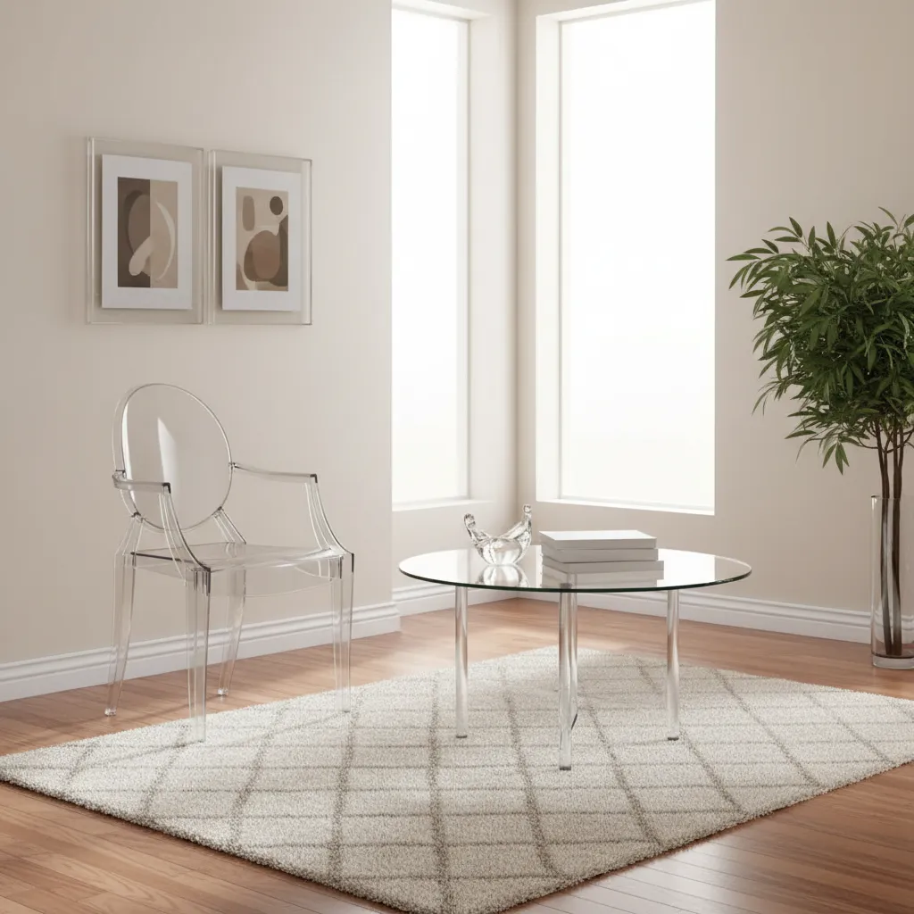 A clear acrylic chair or a glass coffee table provides function without adding visual weight. Because you can see right through them, they take up virtually zero visual space in the room.