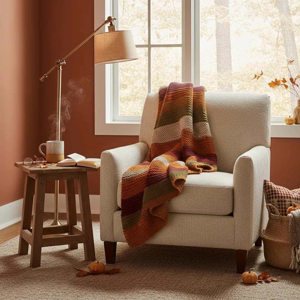 Drape a chunky knit blanket over your sofa or at the foot of your bed. Look for materials like wool or chenille in autumnal colors such as mustard yellow, burnt orange, or deep burgundy. Not only does this add visual warmth, but it’s also perfect for snuggling up with a good book.