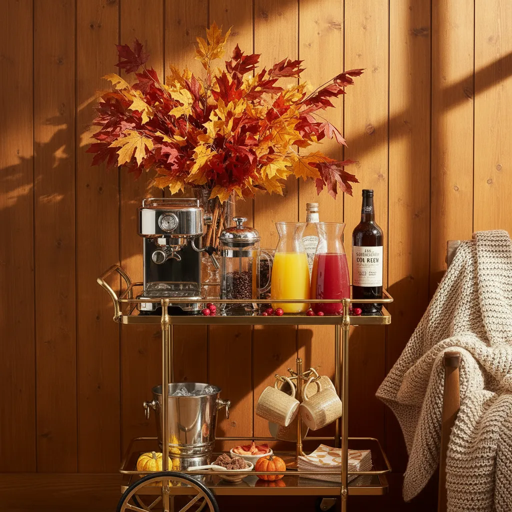 If you have a Juice and Coffee cart, give it a seasonal update. Stock it with ingredients for fall cocktails like apple cider mules or pumpkin spice martinis. Add some small gourds, a vase of autumn leaves, and some cinnamon sticks for garnish.