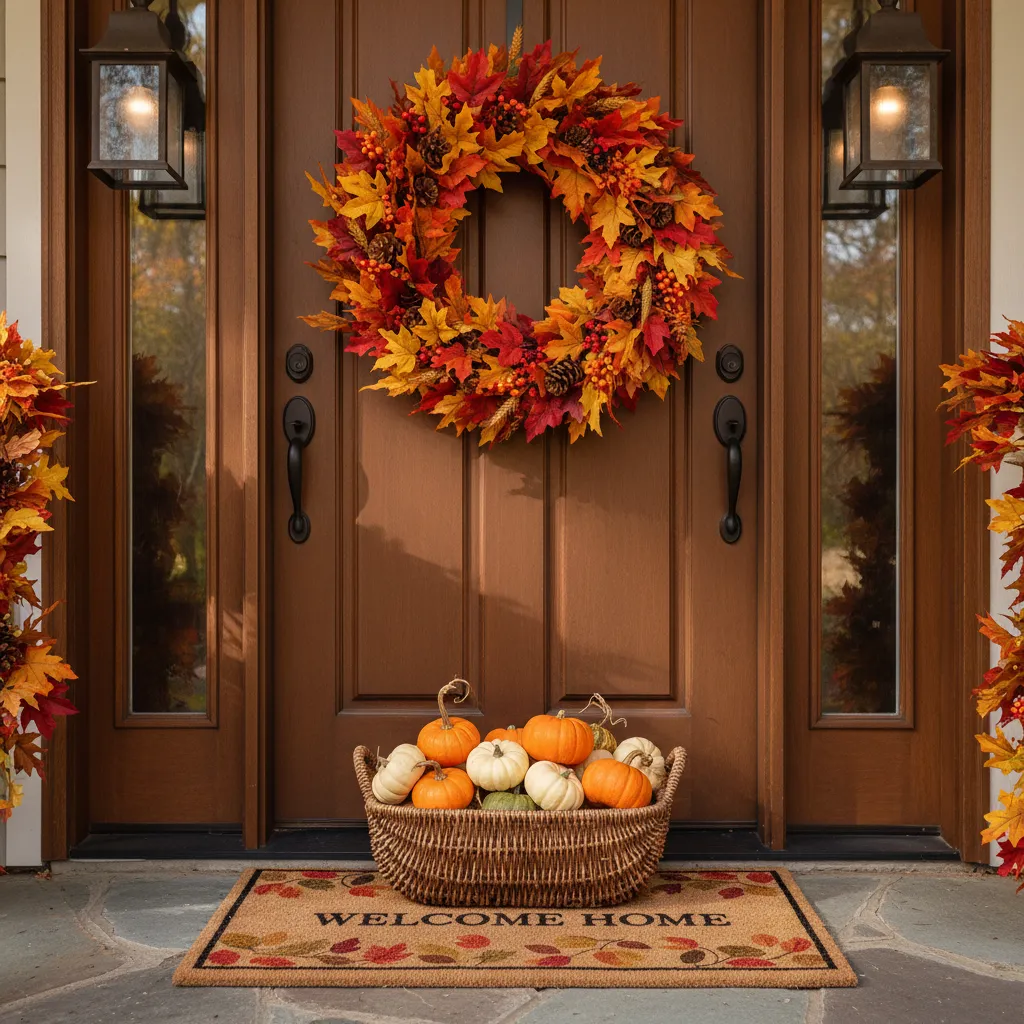Make a great first impression with a fall-themed entryway. A simple wreath on the inside of your door, a small basket of mini pumpkins, or a welcoming doormat can set a cozy tone the moment you walk in.