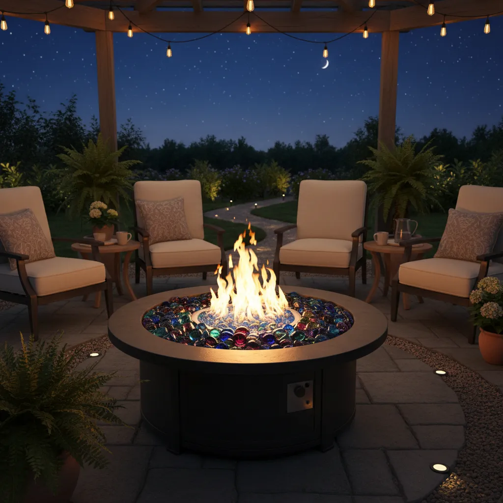 If you have a gas fire pit, swap the traditional lava rocks for shimmering fire glass. These tempered glass gems come in a huge variety of colors, allowing you to customize your flame’s base. The fire reflects off the glass, creating a dazzling, magical effect.
