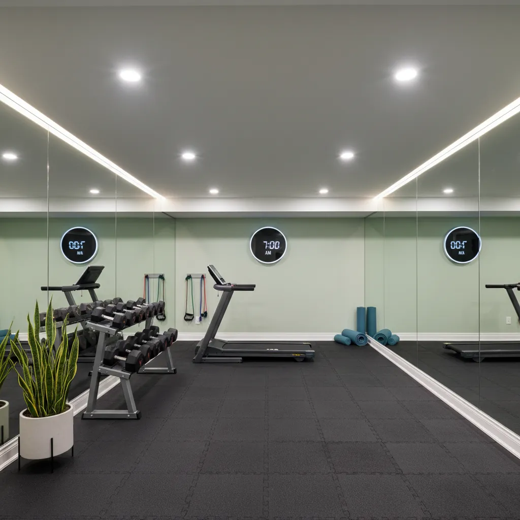 It’s hard to skip a workout when the gym is downstairs. Mirrors are your best friend here—they check your form and bounce light around the room, making a small basement feel double the size.