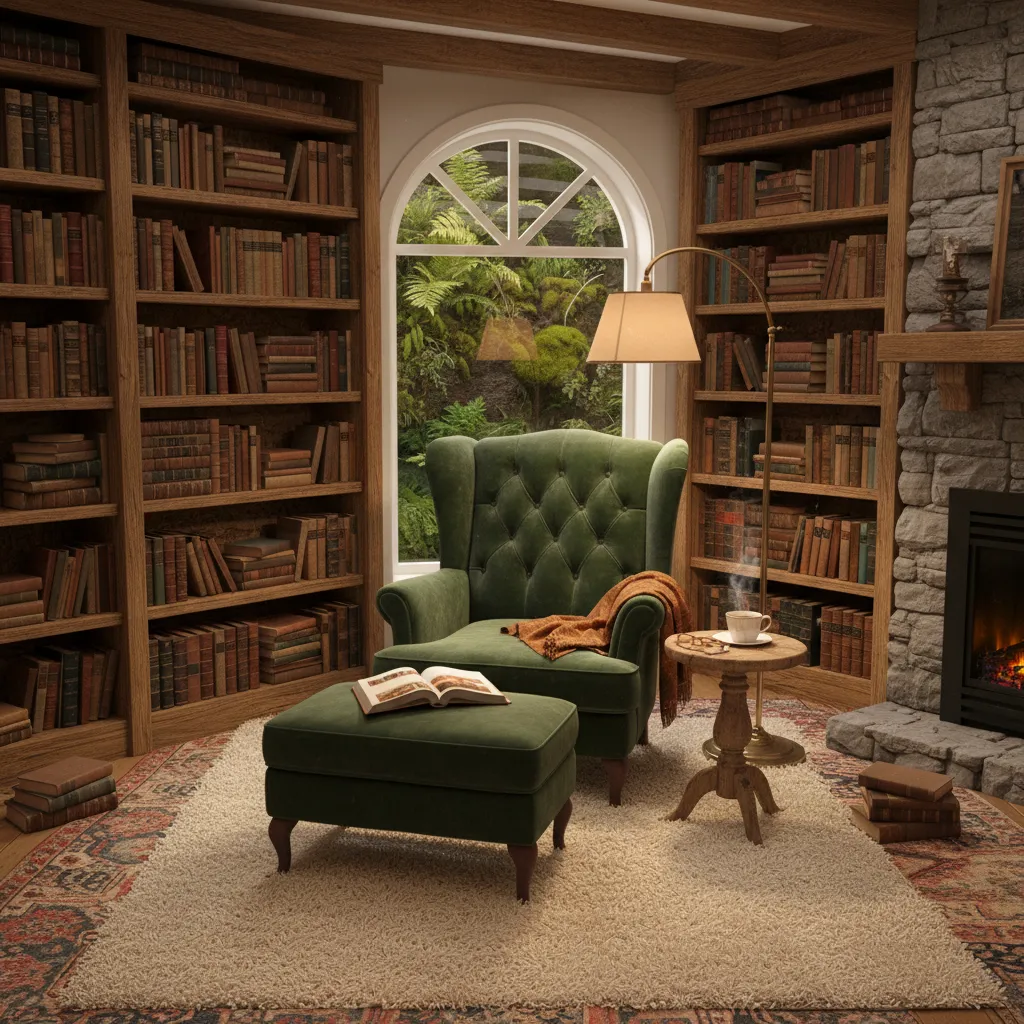 Design Insight: Place a wingback chair and an ottoman in the corner with a dedicated reading lamp. A small side table for tea or coffee completes the scene. This is one of the most cost-effective decor ideas if you already have the books!