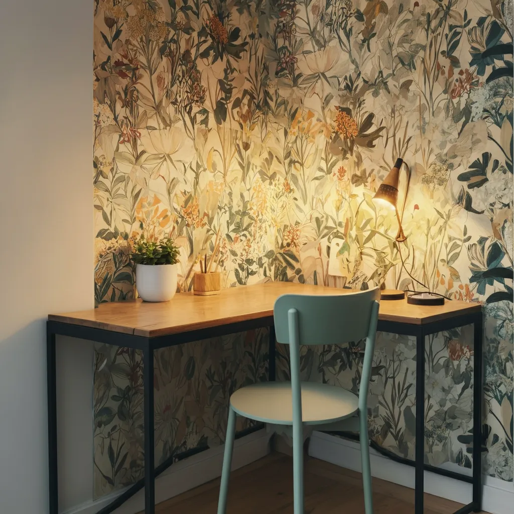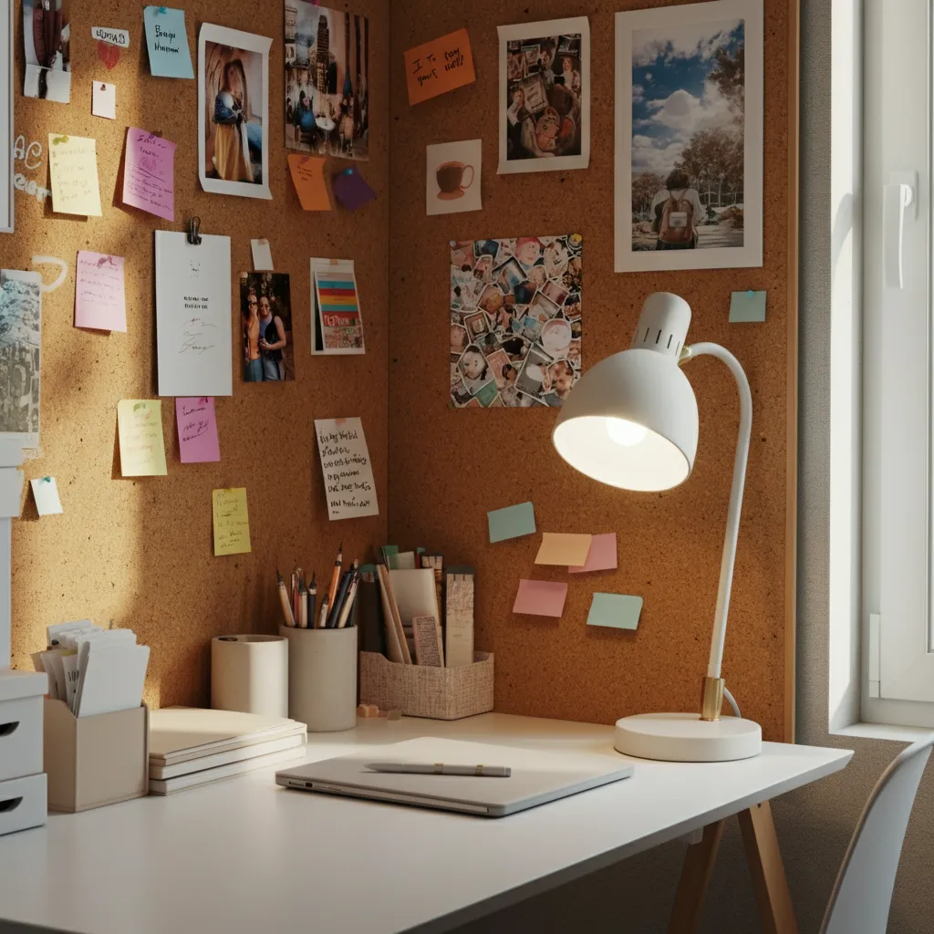 Cover the wall behind your desk with cork tiles. This creates a giant pinboard where you can tack up notes, inspiration, and important reminders. It’s both functional and adds a warm, natural texture.