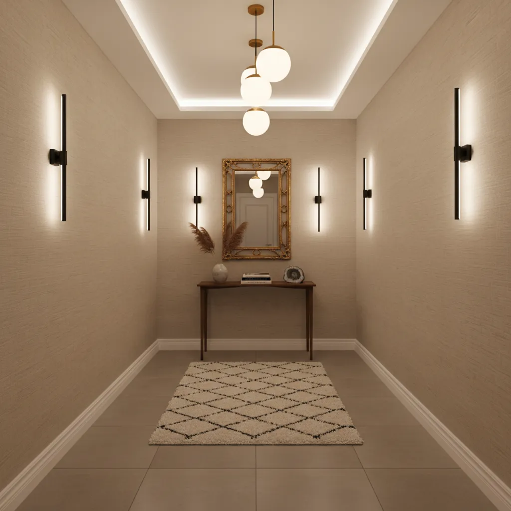 Hallway lighting improves visibility, safety, and ambiance. Proper lighting also enhances the design, making narrow or dark hallways feel open, welcoming, and stylish.