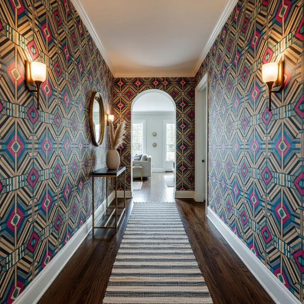 Transform your hallway walls with bold, patterned wallpaper. Whether you opt for floral, geometric, or abstract designs, wallpaper can instantly add character and charm to your space.