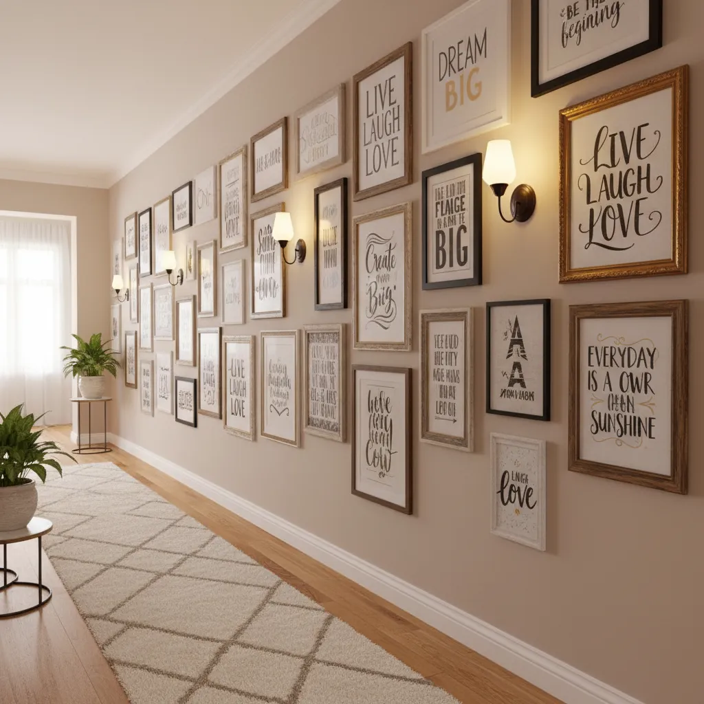 Decorate your hallway walls with framed inspirational quotes or typography art. This adds a personal and motivational touch to your home.