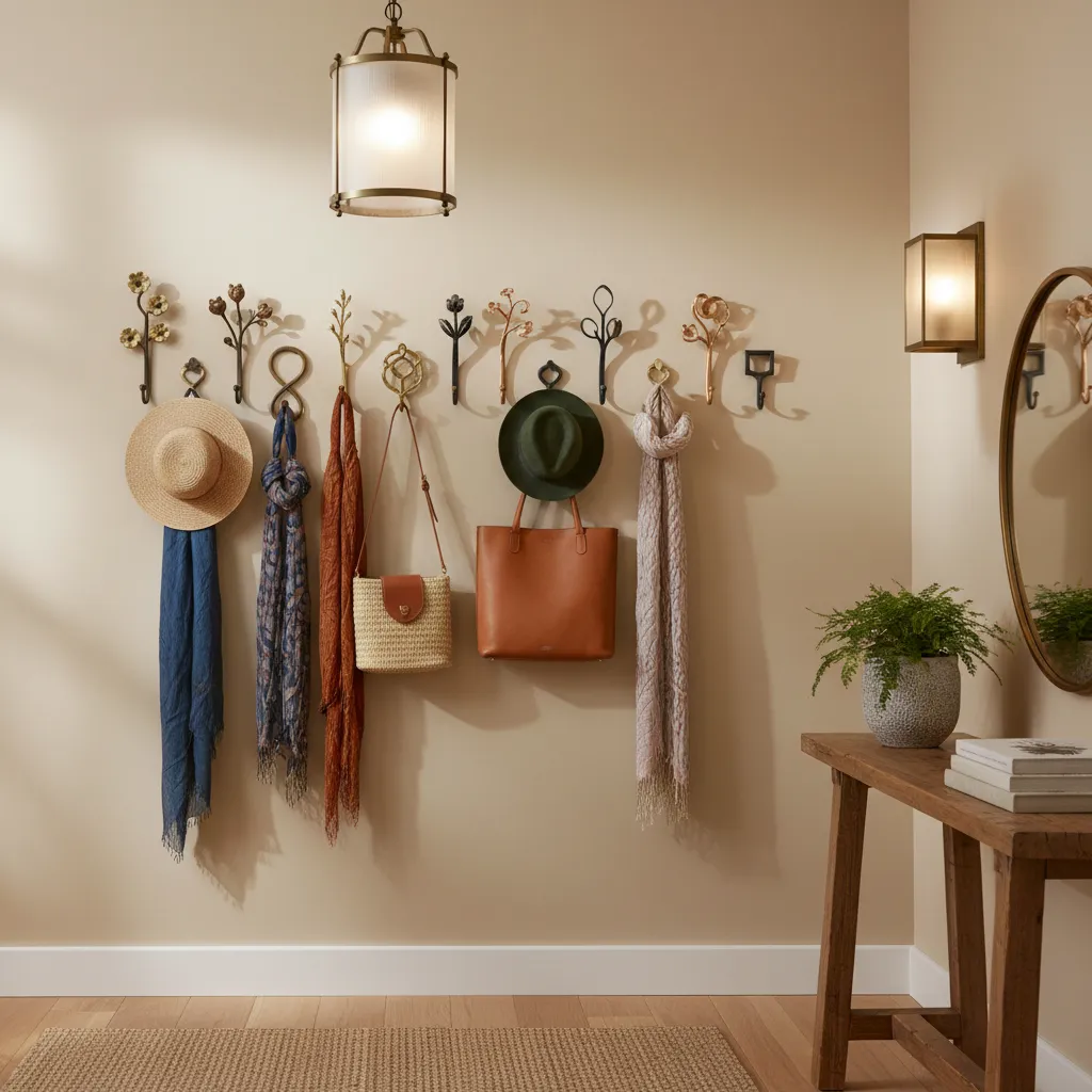 Combine functionality with aesthetics by installing stylish wall hooks. Use them to hang hats, bags, or scarves while adding a decorative element to your hallway.