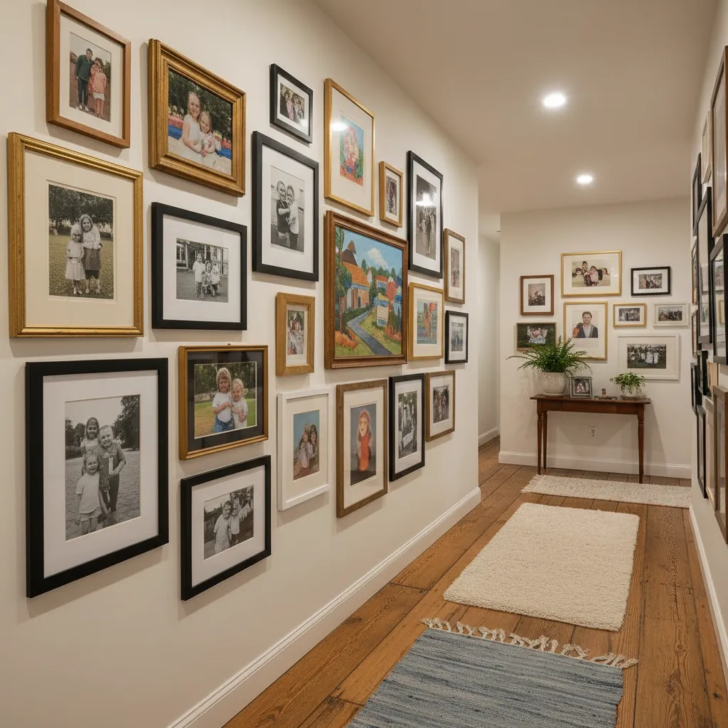 Create a gallery wall filled with family photos, art prints, or a mix of both. Use frames of varying sizes and styles for a dynamic look, or stick to a uniform design for a more cohesive feel. This is a great way to personalize your hallway and make it a conversation starter.