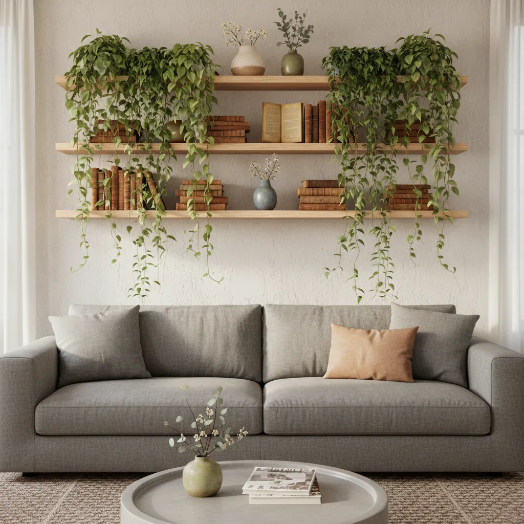 - What to display: A mix of trailing plants (like pothos), vintage books, and small ceramic vases creates a lived-in look.