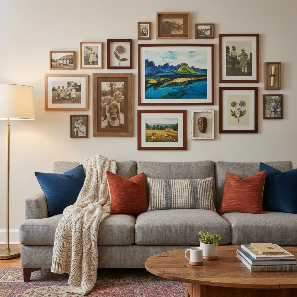 Transforming your living room doesn’t require a total renovation. Often, it just takes focusing on the walls. By adding texture, personal mementos, and warm tones, you change the feeling of the space completely.