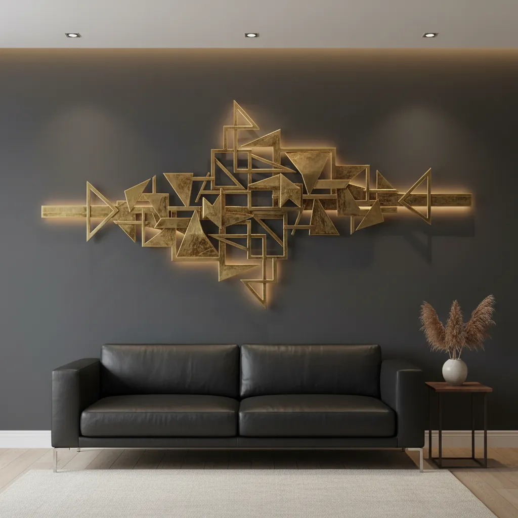 - Shapes: Look for abstract geometric shapes in brass, copper, or matte black.