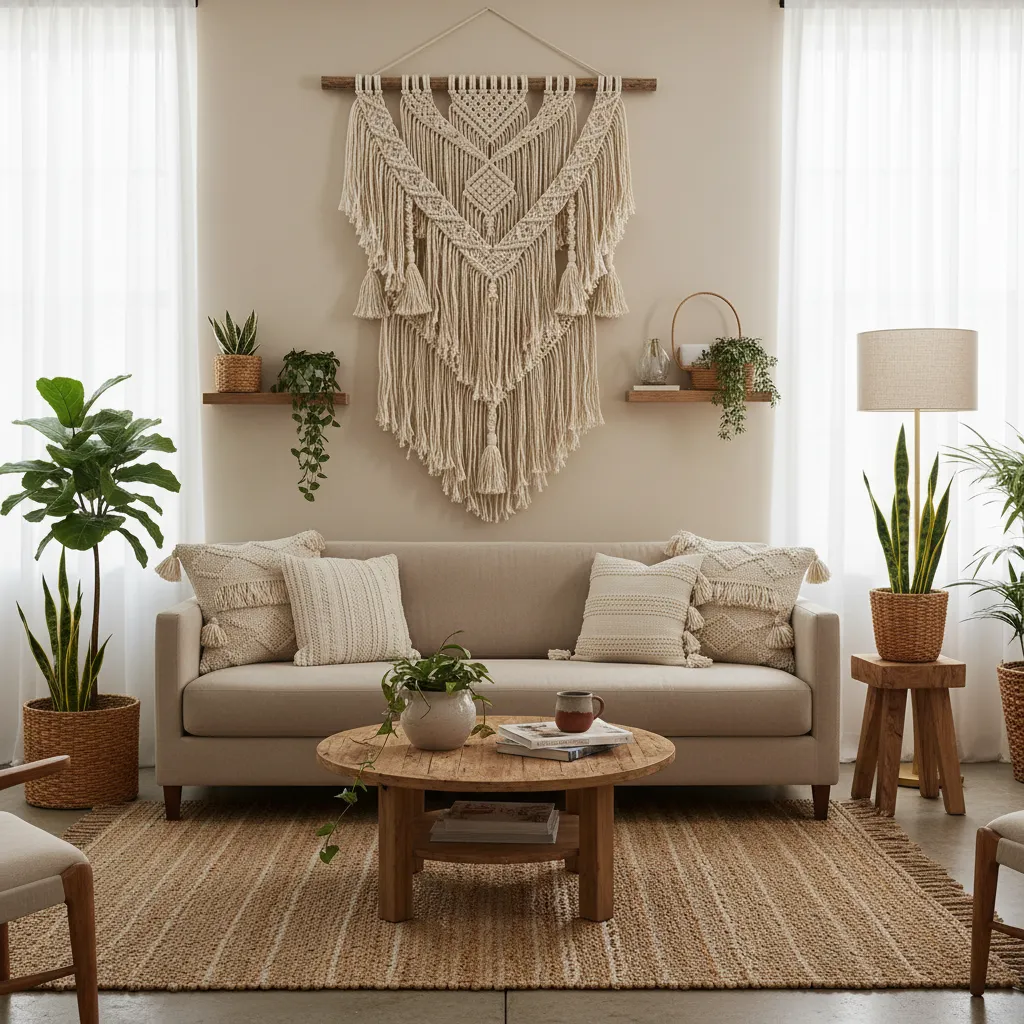 If you want to soften a room that feels too “hard” or modern, texture is the answer. Macramé hangings, woven tapestries, or even a vintage rug hung on the wall add instant coziness.