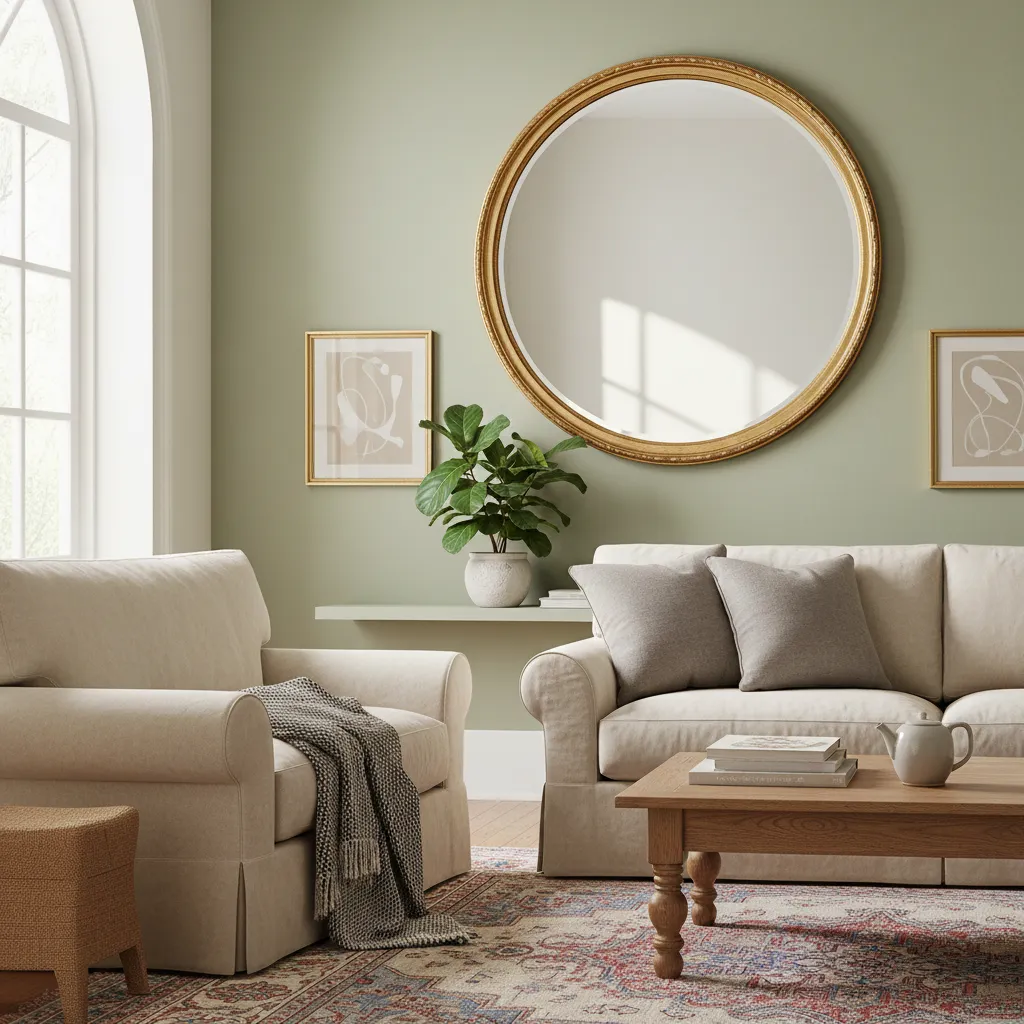 - Style Idea: A round mirror with a gold or brass frame adds a touch of elegance, while a distressed wood frame leans into farmhouse charm.