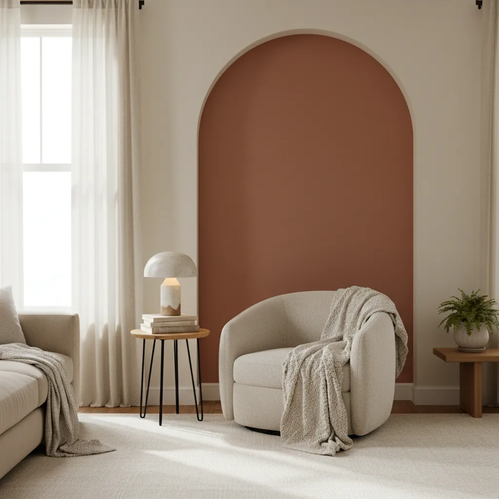 This is one of the trendiest and most affordable decor ideas right now. Paint a solid arch shape on the wall to highlight a specific piece of furniture, like a console table or a reading chair.
