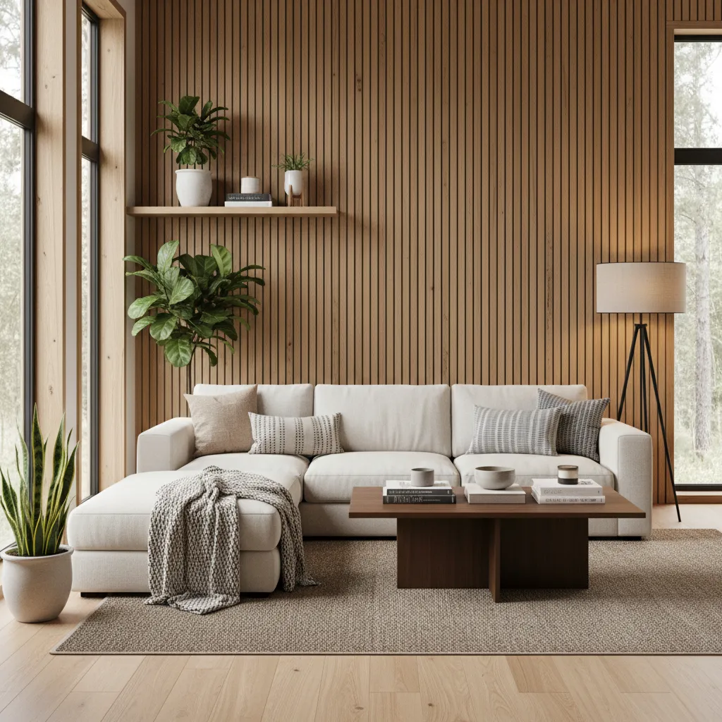 - High-Value Insight: Wood tones instantly warm up cool grey or white walls.