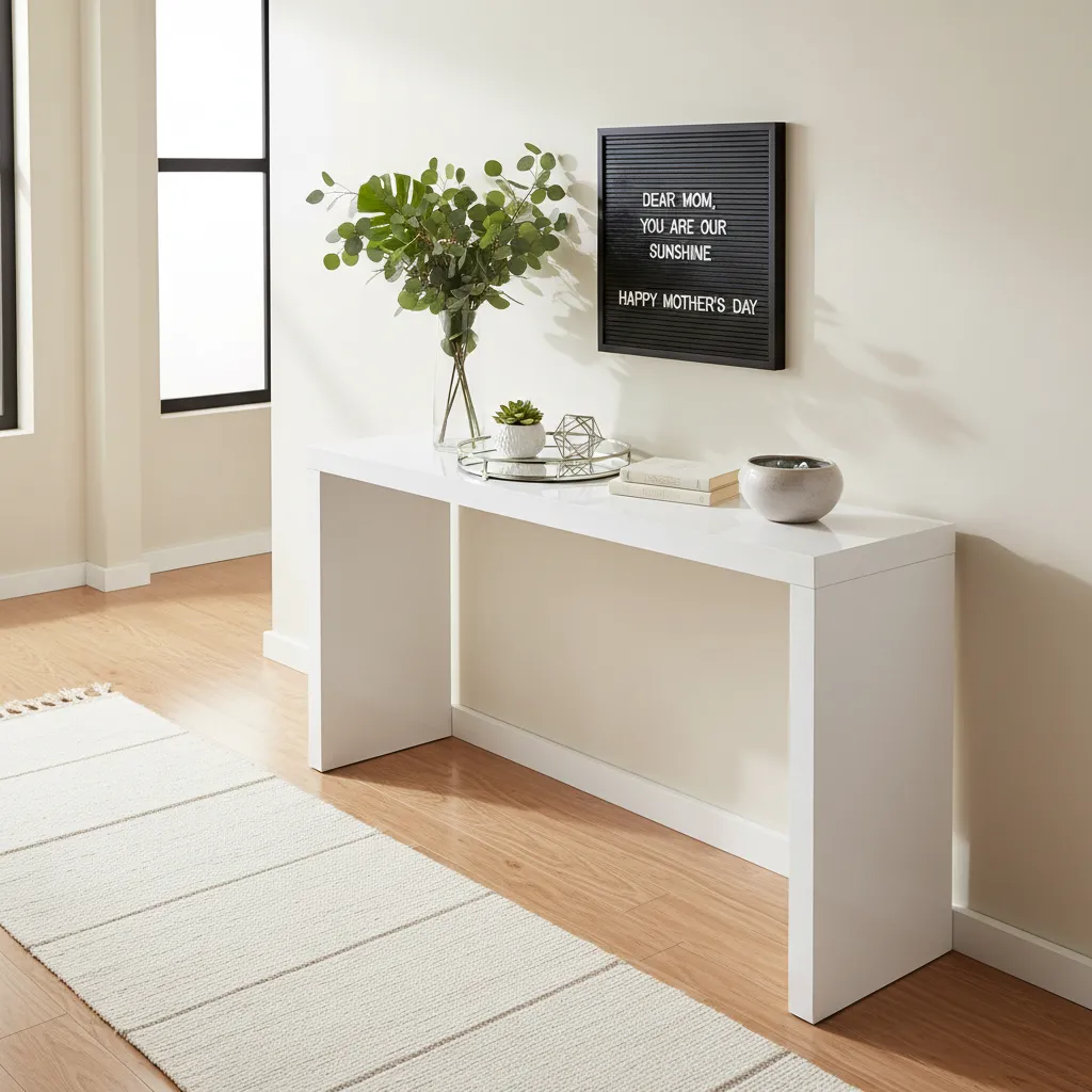 The entryway sets the tone for the rest of your house. Give it a quick but impactful refresh to make her feel celebrated immediately. Clear away any clutter, shoes, or mail that usually piles up by the door. Lay down a fresh, clean runner rug and add a small welcome sign or a customized letter board with a sweet Mother’s Day message.